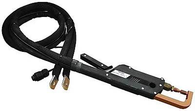 Multifunction gun for sheet metal dent removal, rivet welding and local heating with carbon electrode. One button allows remote quick program selection and precise setting. Auto-start function allows automatic start of the welding process as soon as the torch touches the sheet.