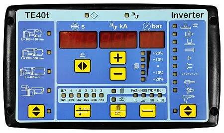 Adjustment of welding parameters such as ignition time (in ms), display of actual welding current, pulse and automatic compensation are among TE40t's many features; users can automatically adjust welding parameters according to arm selection, welding materials and sheet thickness.